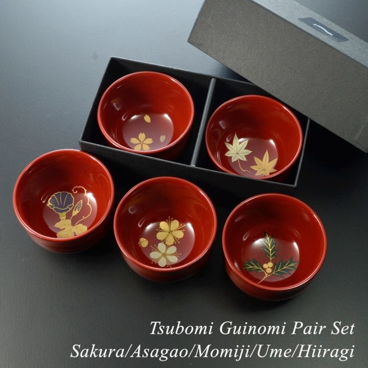 つぼみ ぐい呑 ペアセット (桜・朝顔・もみじ・梅・柊)